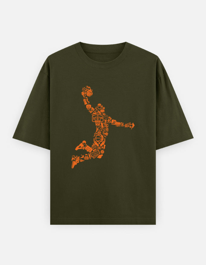 Charge up your fit with the “Masked Momentum” oversized tee. Featuring a masked baller in full-motion dunk, this design pulses with urban edge and kinetic flair. The oversized silhouette makes it a go-to for relaxed comfort and expressive styling—made for the streets and the game.