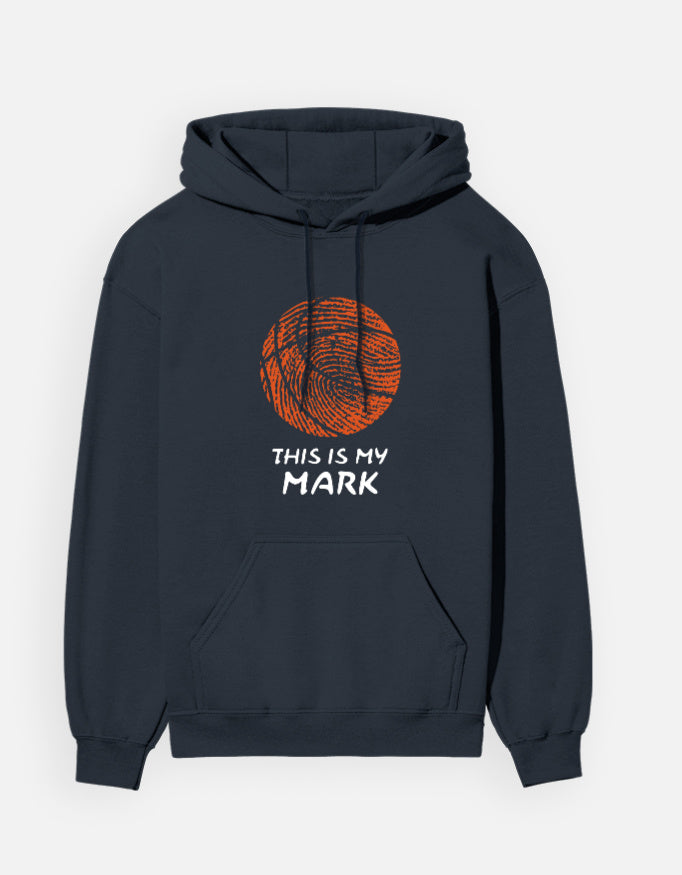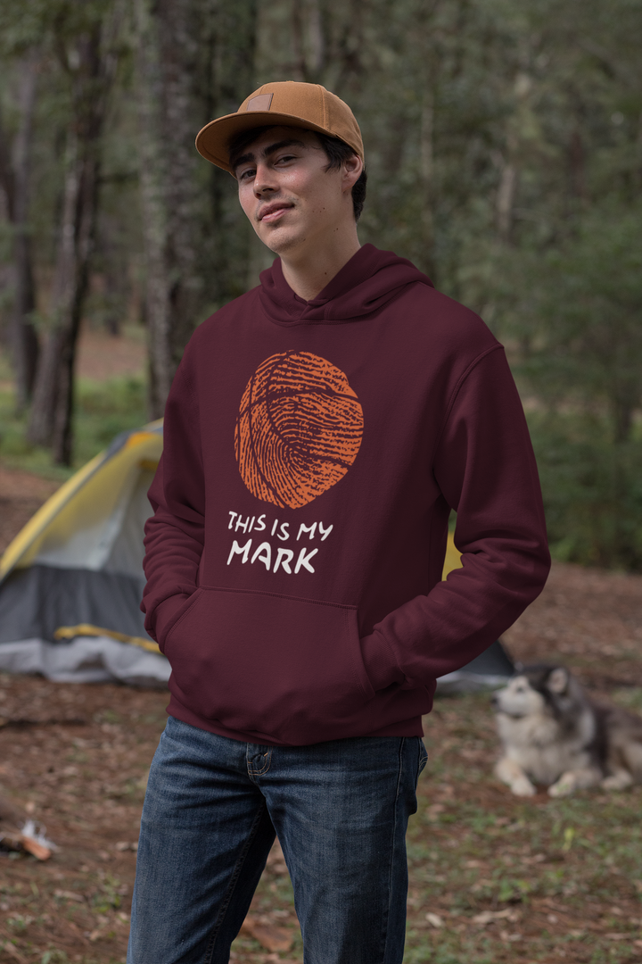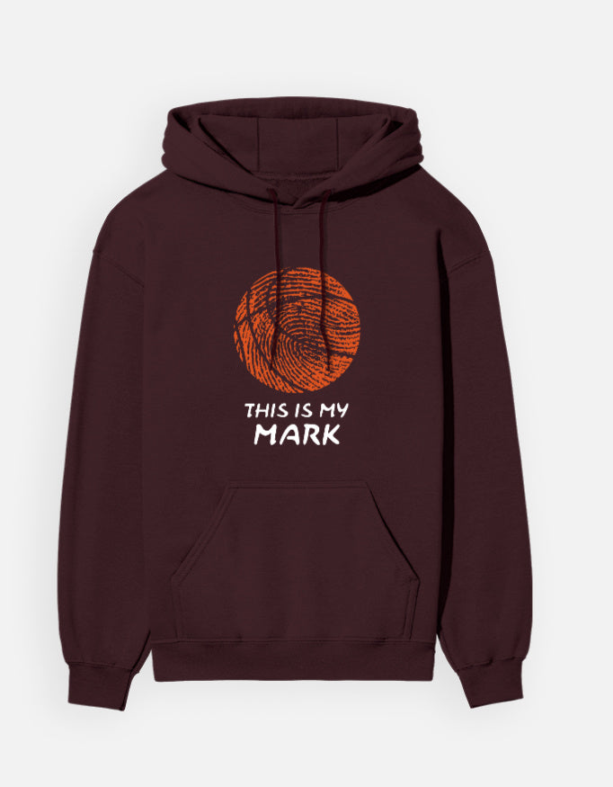 Wrap up in personal power and game-ready style. This hoodie showcases a bold basketball fingerprint design paired with the statement “THIS IS MY MARK”. Built for warmth and impact, it's a tribute to those who bring their own signature to everything they do.