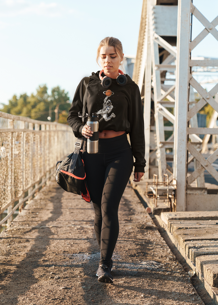This cozy crop hoodie features an astronaut elevating the art of basketball—literally. With a celestial backdrop and modern silhouette, it’s built for chill vibes, late-night inspiration, or simply throwing on when you want to feel unstoppable.