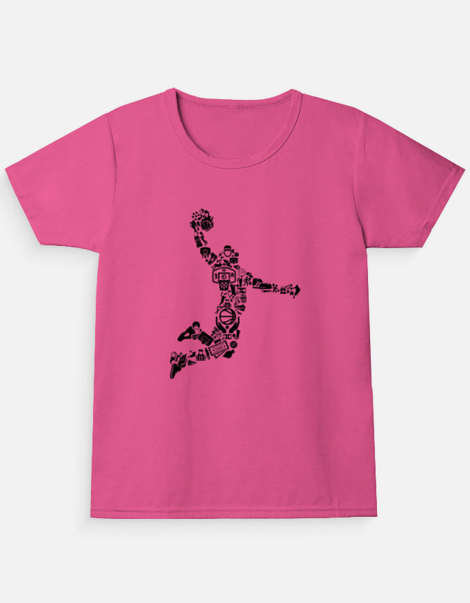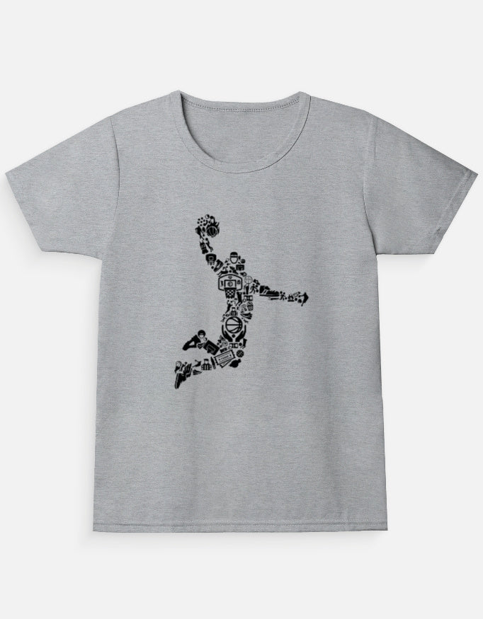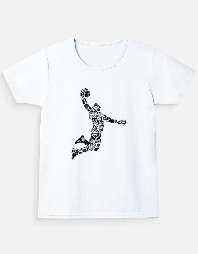 With a playful spin on the classic basketball form, this tee fuels imagination. The orange figure composed of small symbols stands out on soft fabric—made for young athletes, creators, and go-getters.