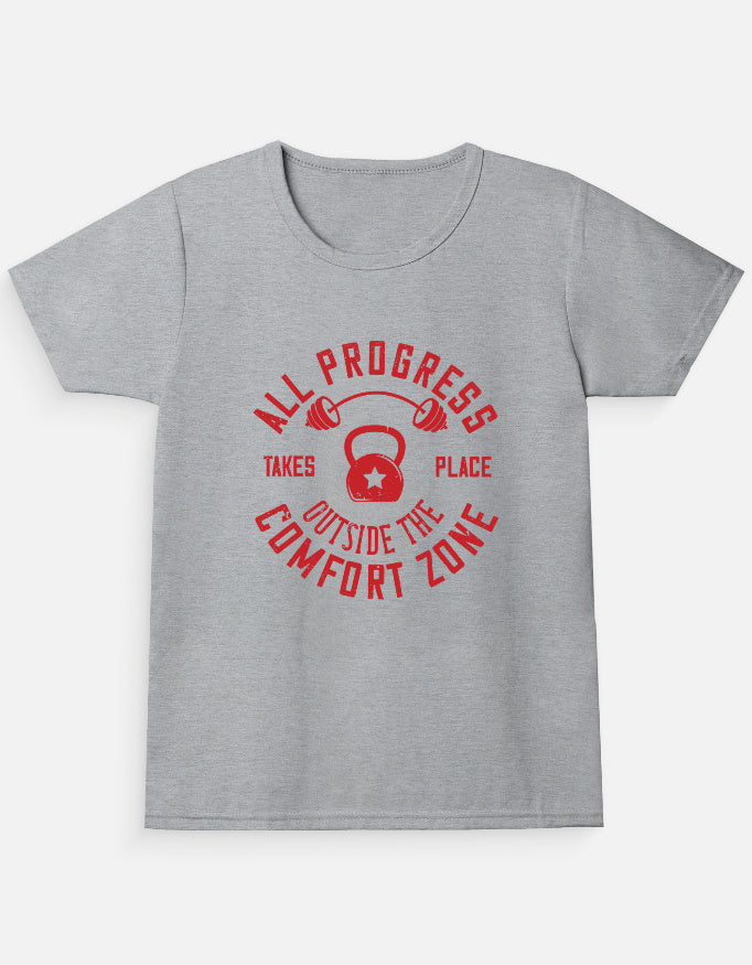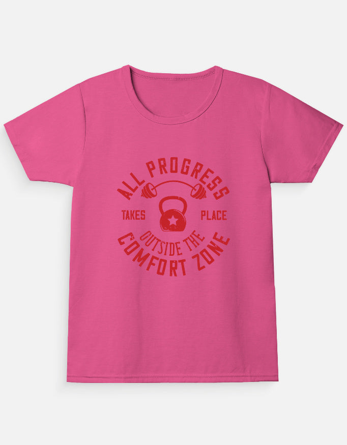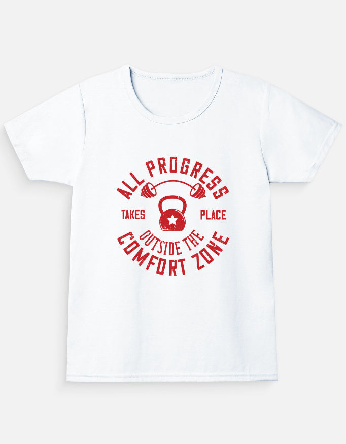 Let her rock her strength in this All Progress girls’ t-shirt! With a strong red message and gym-themed design, this shirt inspires girls to break barriers and move past their comfort zone. Crafted for confidence and comfort, it’s perfect for athletic girls, gym classes, or anyone chasing big dreams.