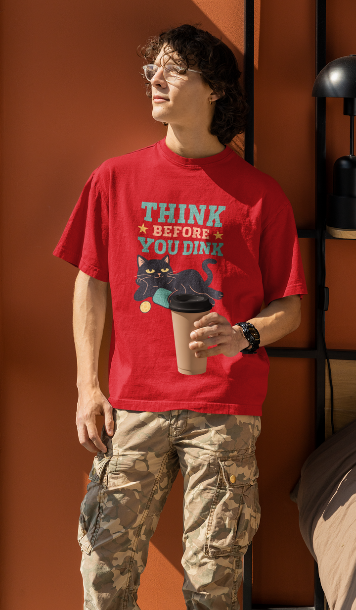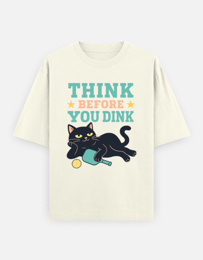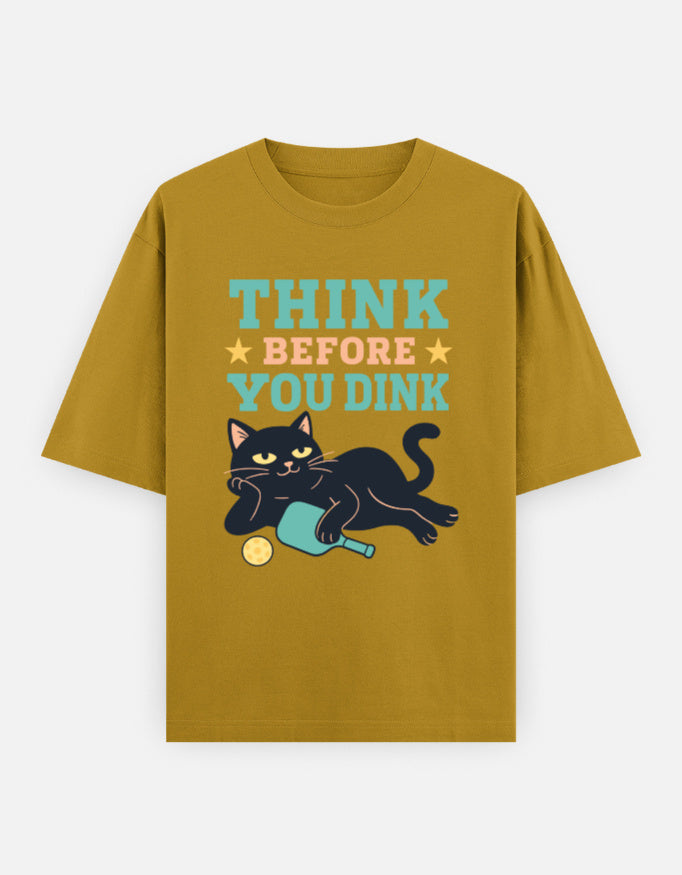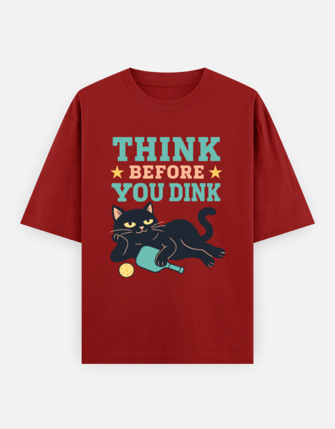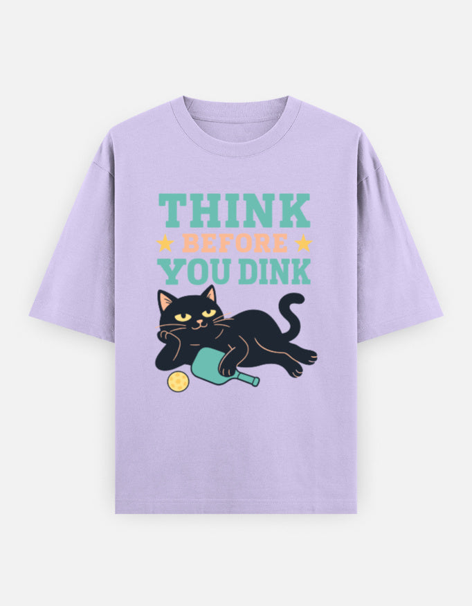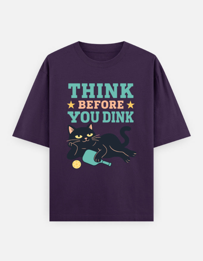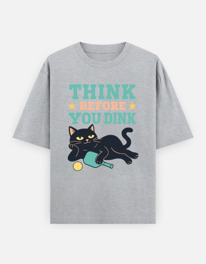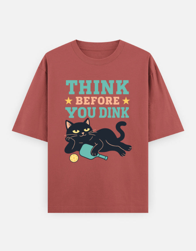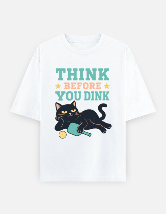 Make a bold statement in this oversized tee showcasing your love for pickleball and feline flair. With the humorous “Think Before You Dink” cat graphic and relaxed fit, it’s a comfy favorite for both men and women with unique style.
