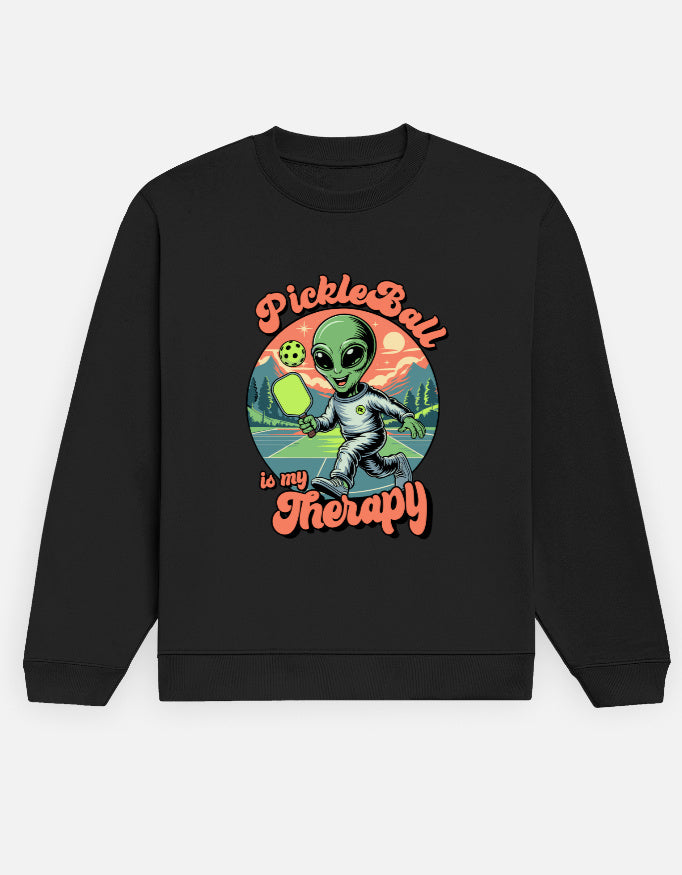 Wrap yourself in warmth and interstellar style with our Pickleball Therapy Sweatshirt. Perfect for chilly mornings or post-match lounging, this piece brings together comfort, standout design, and universal appeal.