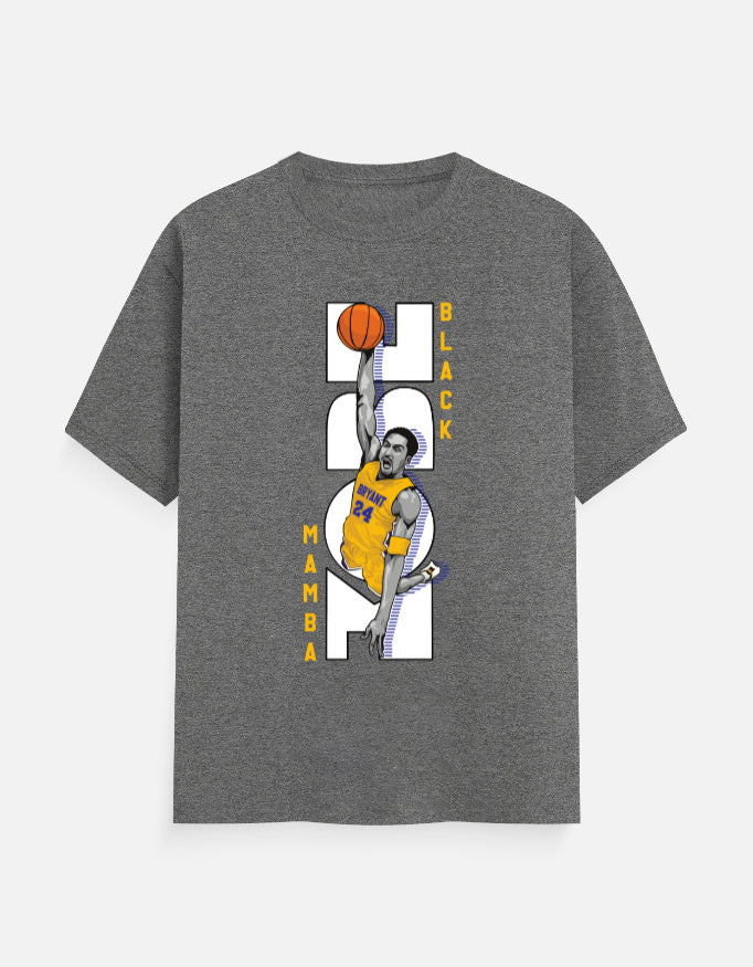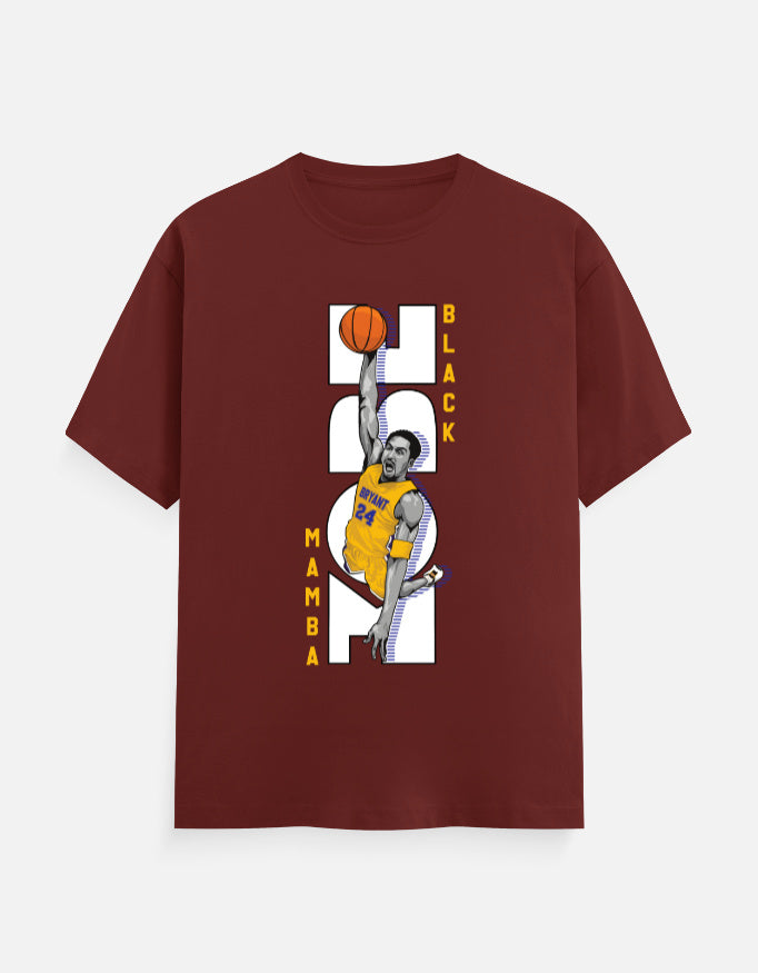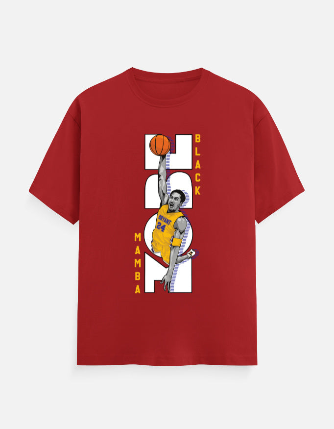 Celebrate the legacy of a legend with this classic Kobe Bryant tribute t-shirt, featuring bold artwork of the iconic #24 in action. Set against a deep maroon background, the graphic captures Bryant mid-flight in his signature yellow Lakers jersey, surrounded by powerful typography that reads “BLACK MAMBA”—a nod to his fierce mentality and unforgettable impact on the game.
