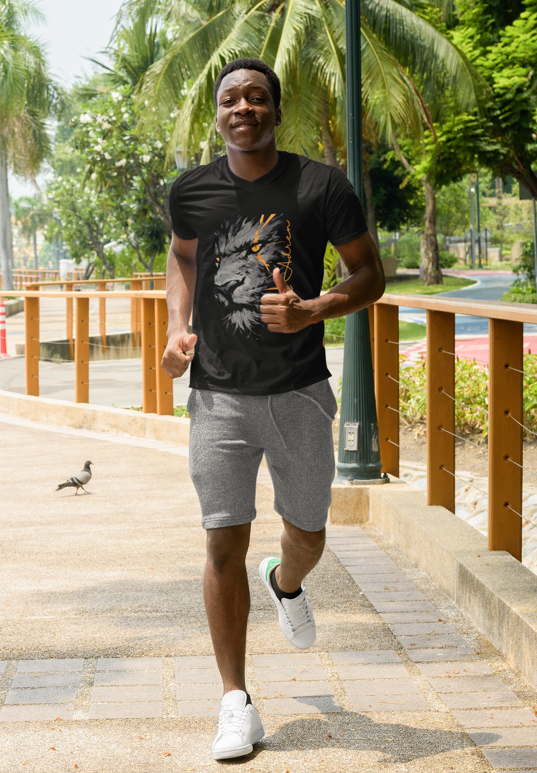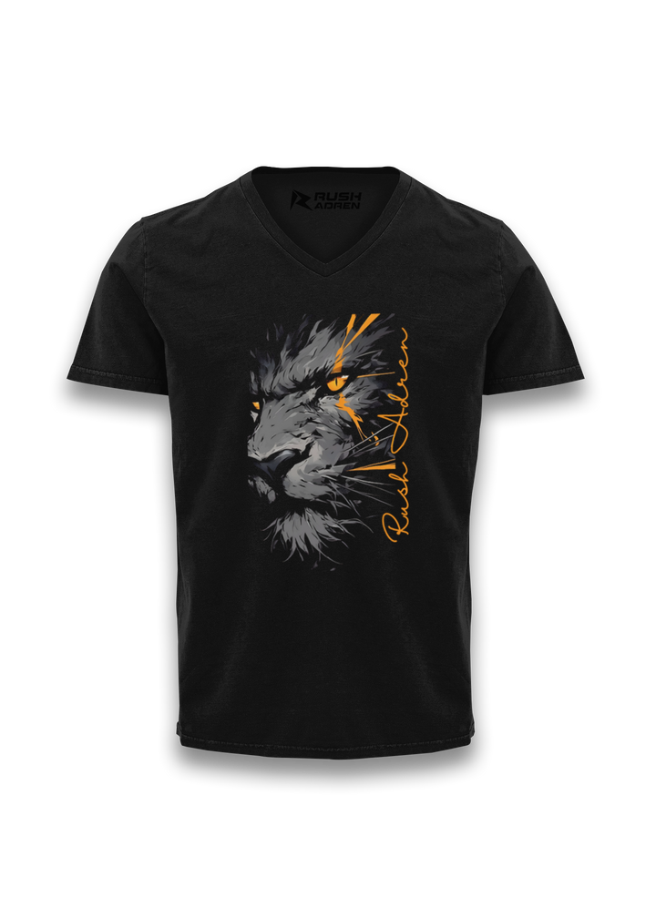 Fierce Lion V-neck Half Sleeve T-Shirt
