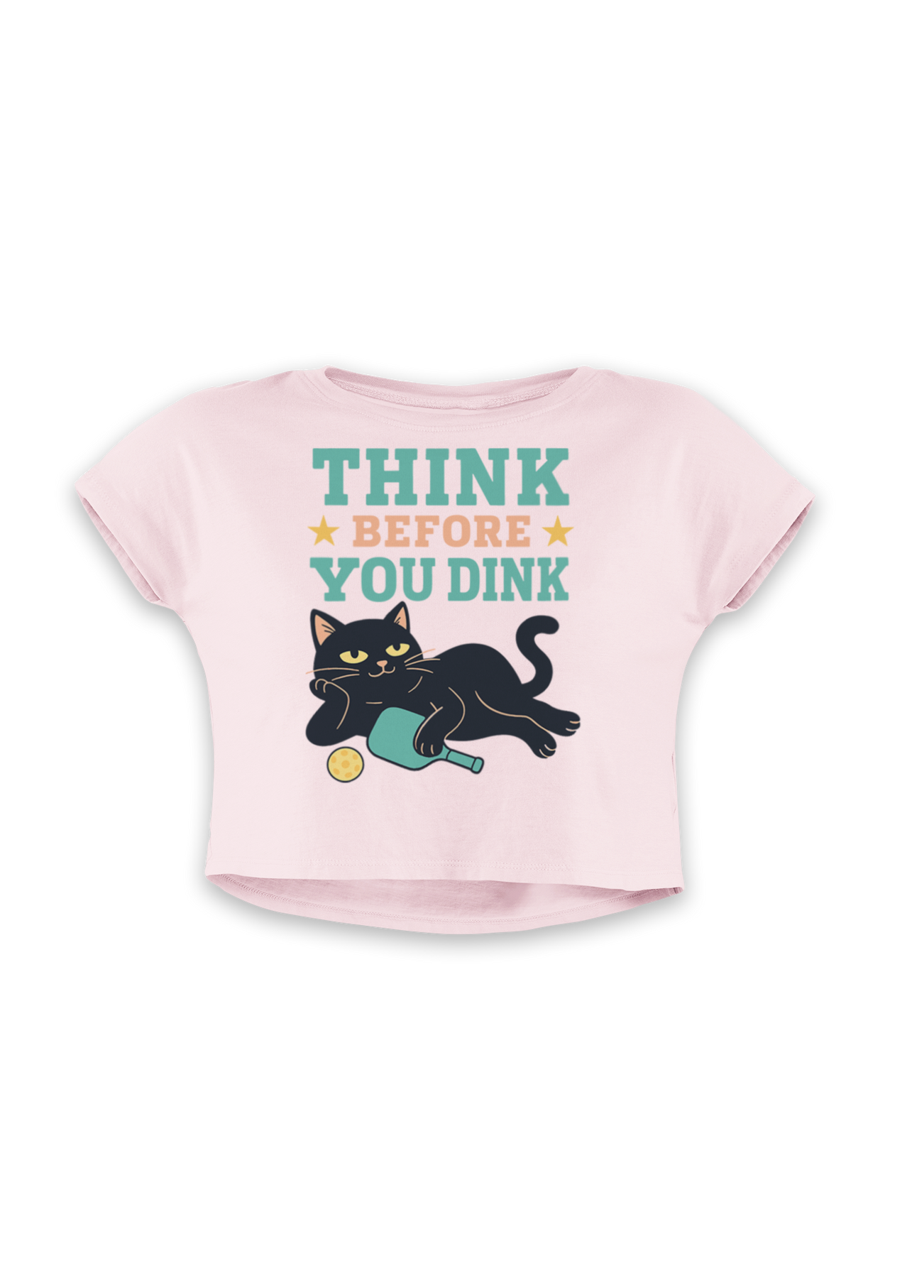 Add attitude to your wardrobe with this fashion-forward crop top. Featuring the iconic lounging cat and “Think Before You Dink” line, it’s ideal for casual hangouts or sporty moments.