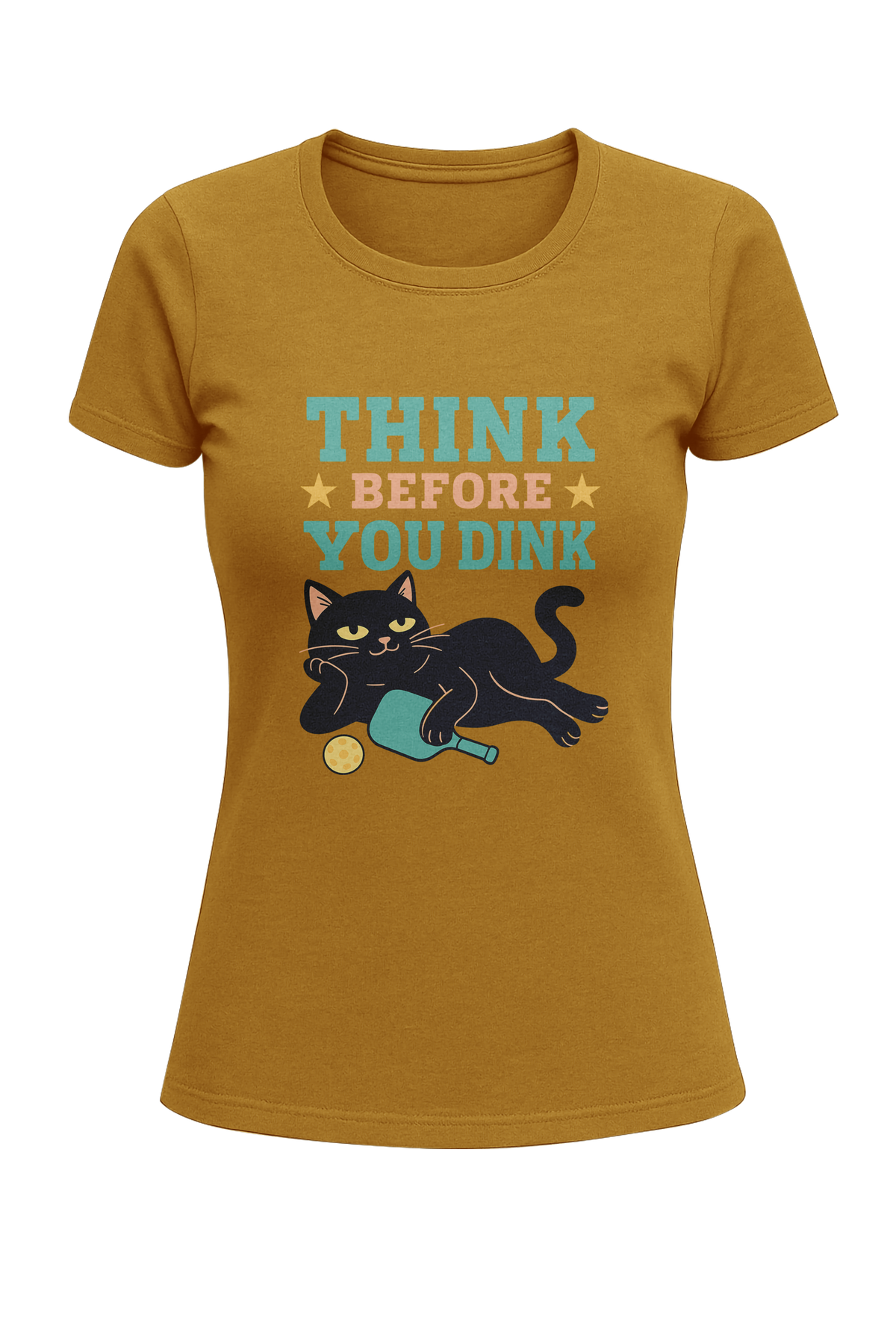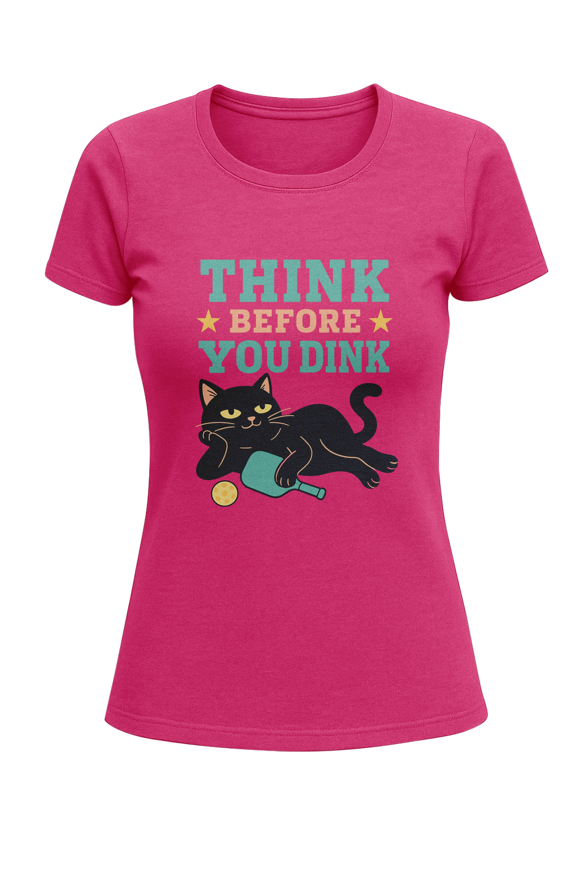 Designed with playful confidence, this classic tee features the “Think Before You Dink” slogan and a charming black cat graphic. It’s soft, breathable, and perfect for women who love pickleball, casual fashion, and showing off their sense of humor.