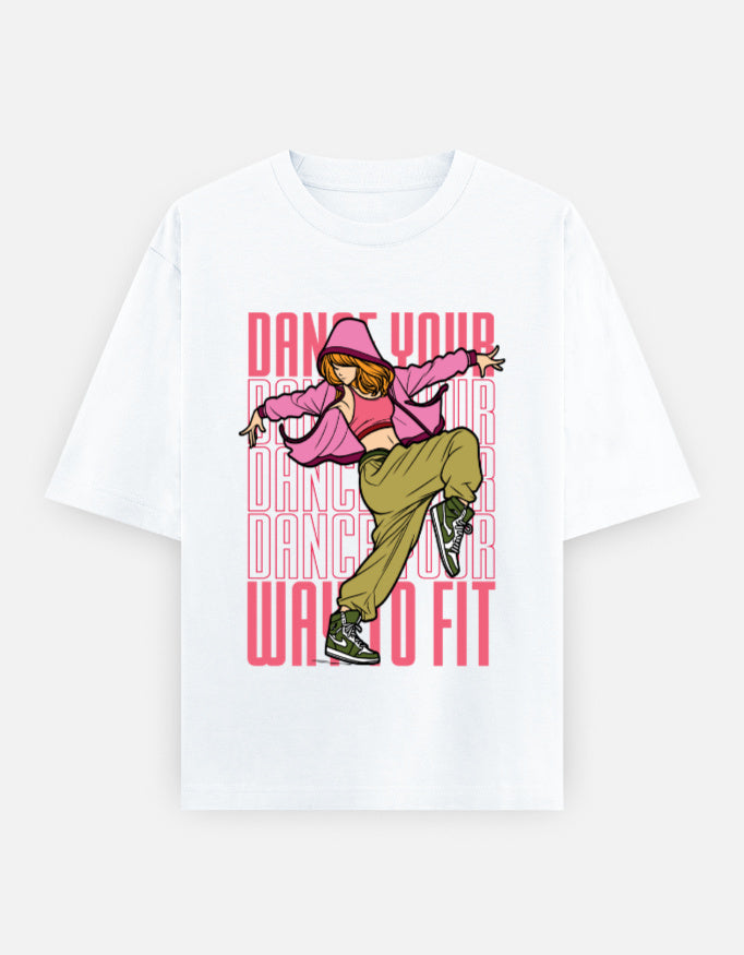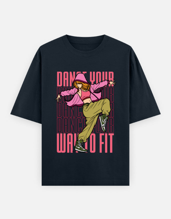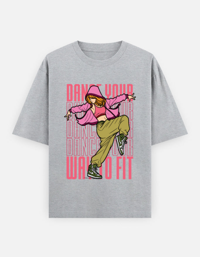 Embrace relaxed style with this oversized unisex tee featuring the “Dance Your Way to Fit” graphic. Designed for streetwear lovers and fitness fans alike, it offers roomy comfort, bold visuals, and lasting quality—perfect for workouts or laid-back weekends.