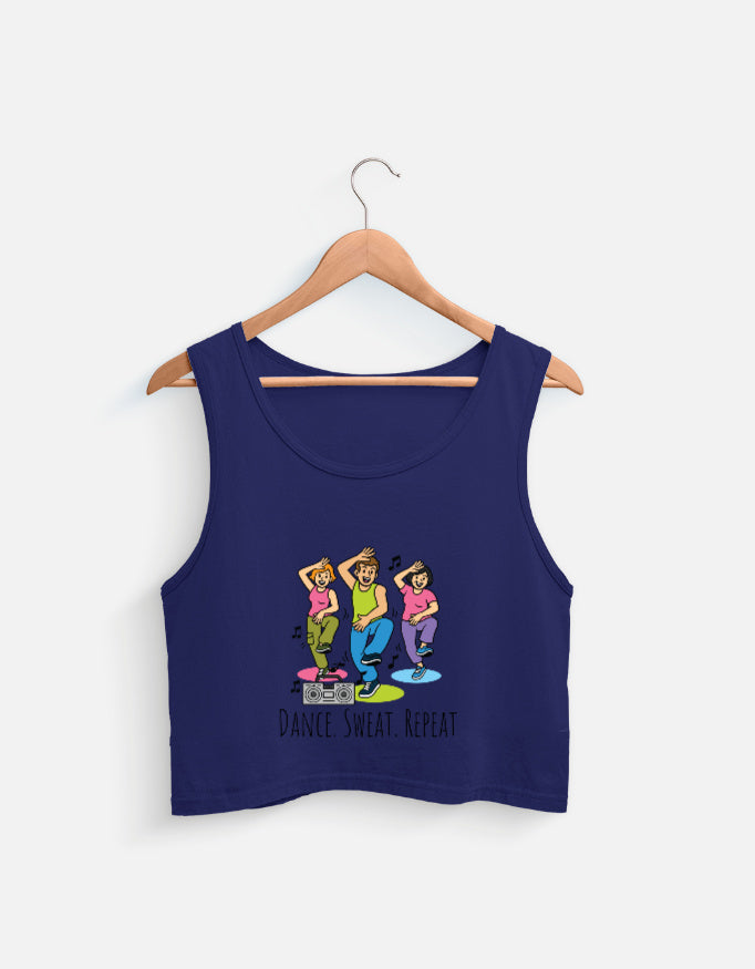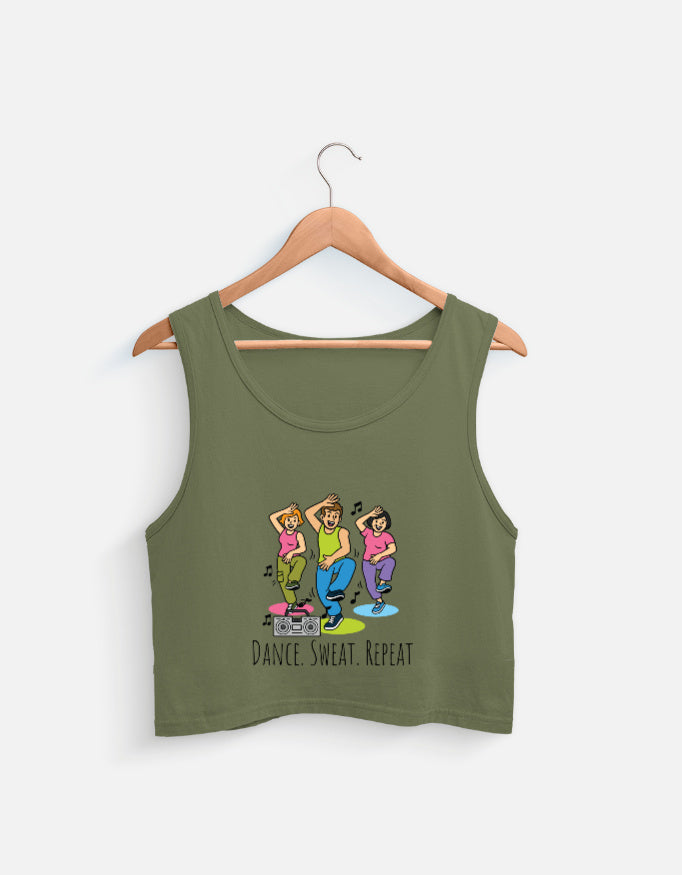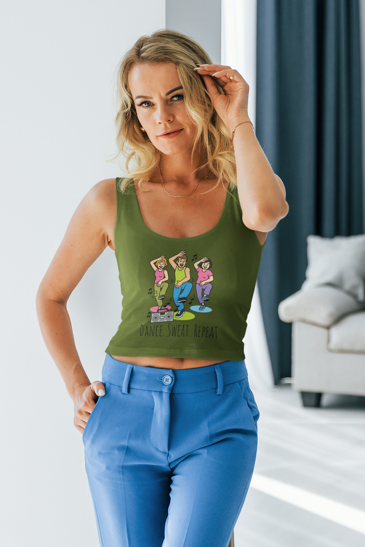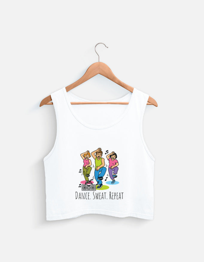 Made for powerful moves and sweat-worthy energy, this crop tank features the iconic “Dance Sweat Repeat” print. Its sleeveless, cropped design offers superior breathability during workouts and sleek style for your active wardrobe.