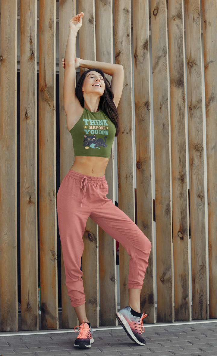 Playful and bold, this crop tank combines sporty flair with a humorous graphic featuring a black cat and cheeky slogan. Tailored for active women who embrace style and game-day energy.