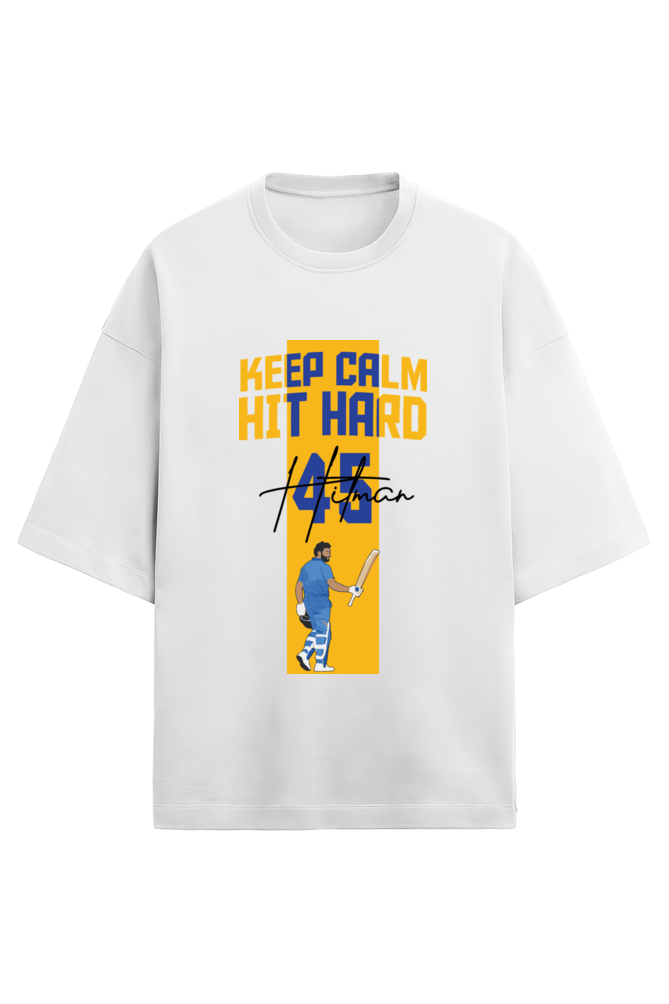 The Keep Calm, Hit Hard design by Rush Adren is a tribute to the undisputed Hitman of Indian cricket — calm under pressure, but lethal with the bat. Featuring the iconic number 45, his signature silhouette, and a clean power pose, this design captures the essence of a man who lets his bat do the talking.